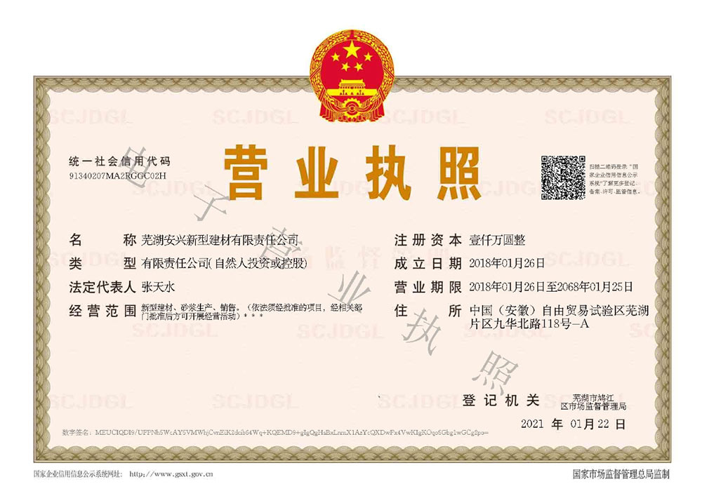 蕪湖安興新型建材有限責(zé)任公司是一家專(zhuān)業(yè)生產(chǎn)干混砂漿建筑材料的新型企業(yè),成立于2018年1月,公司位于中國(guó)(安徽)自由貿(mào)易試驗(yàn)區(qū)蕪湖灣里工業(yè)園,專(zhuān)業(yè)從事干混砌筑砂漿、干混抹灰砂漿、干混地面砂漿、混凝土外加劑的及配套材料的研發(fā)生產(chǎn)與銷(xiāo)售。公司前身上海四虎建材成立于2005年,于2018在蕪湖成立安興新型建材,辛勤發(fā)展至今,已全部采用全自動(dòng)生產(chǎn)線(xiàn),擁有強(qiáng)大的供貨能力。公司成立十多年來(lái),一直專(zhuān)注于干粉砂漿...